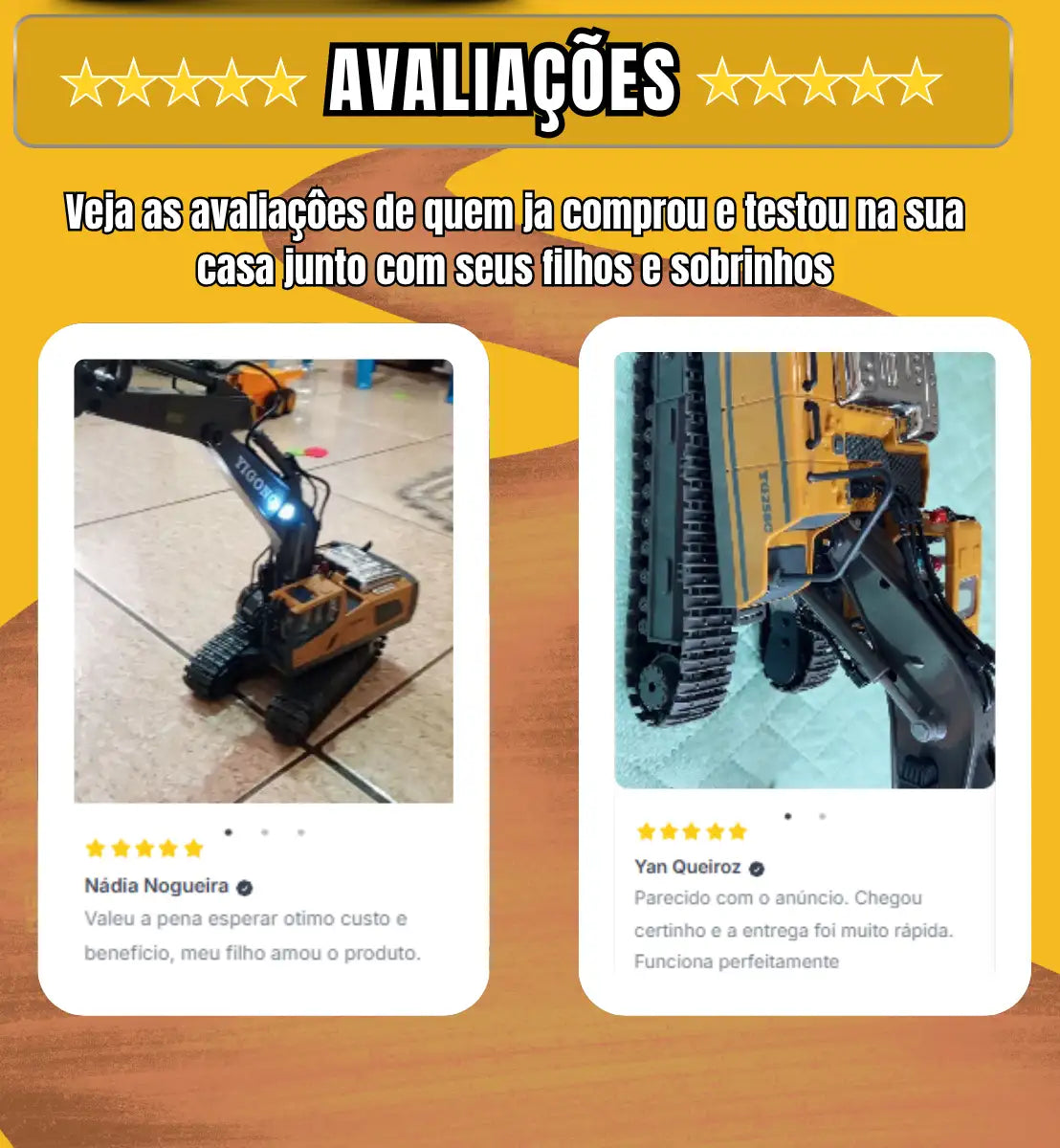 Você tem 7 dias para testar a vontade sua ESCAVADEIRA DE CONTROLE REMOTO, caso tenha algum problema, ou você não goste, basta nos acionar que vamos efetuar o estorno imediatamente ! 90 Dias para defeitos de fabricação